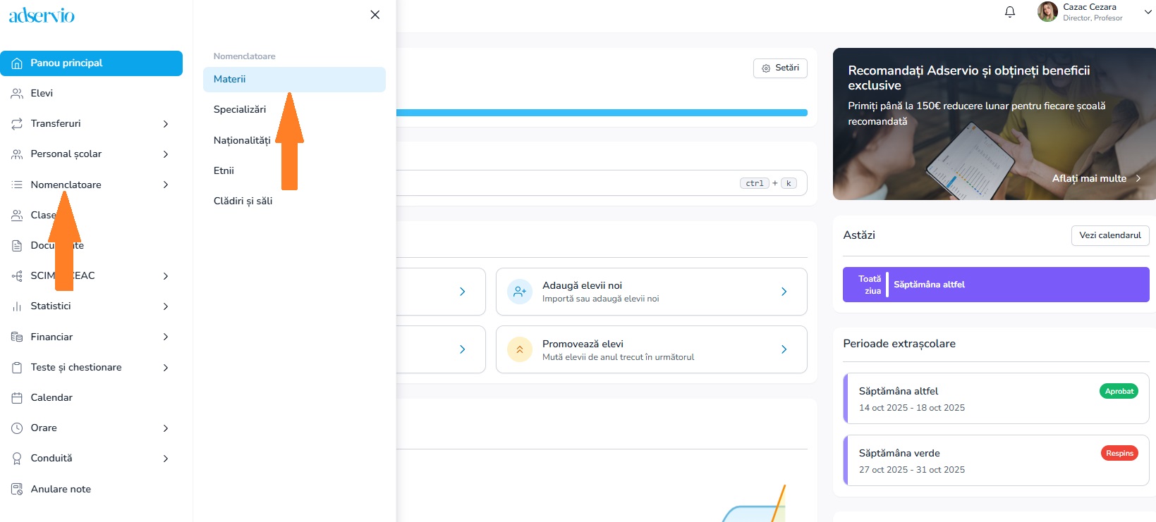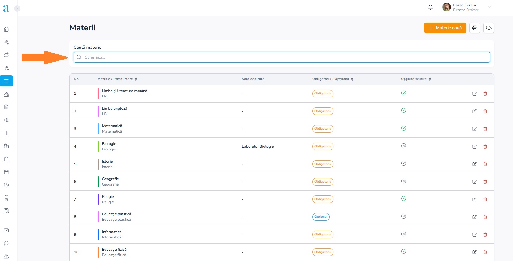1. Din meniul principal, selectează modulul Nomenclatoare, secțiunea Materii;