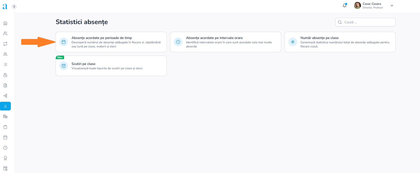 1. Din meniul principal, selectează modulul Statistici/Absențe.