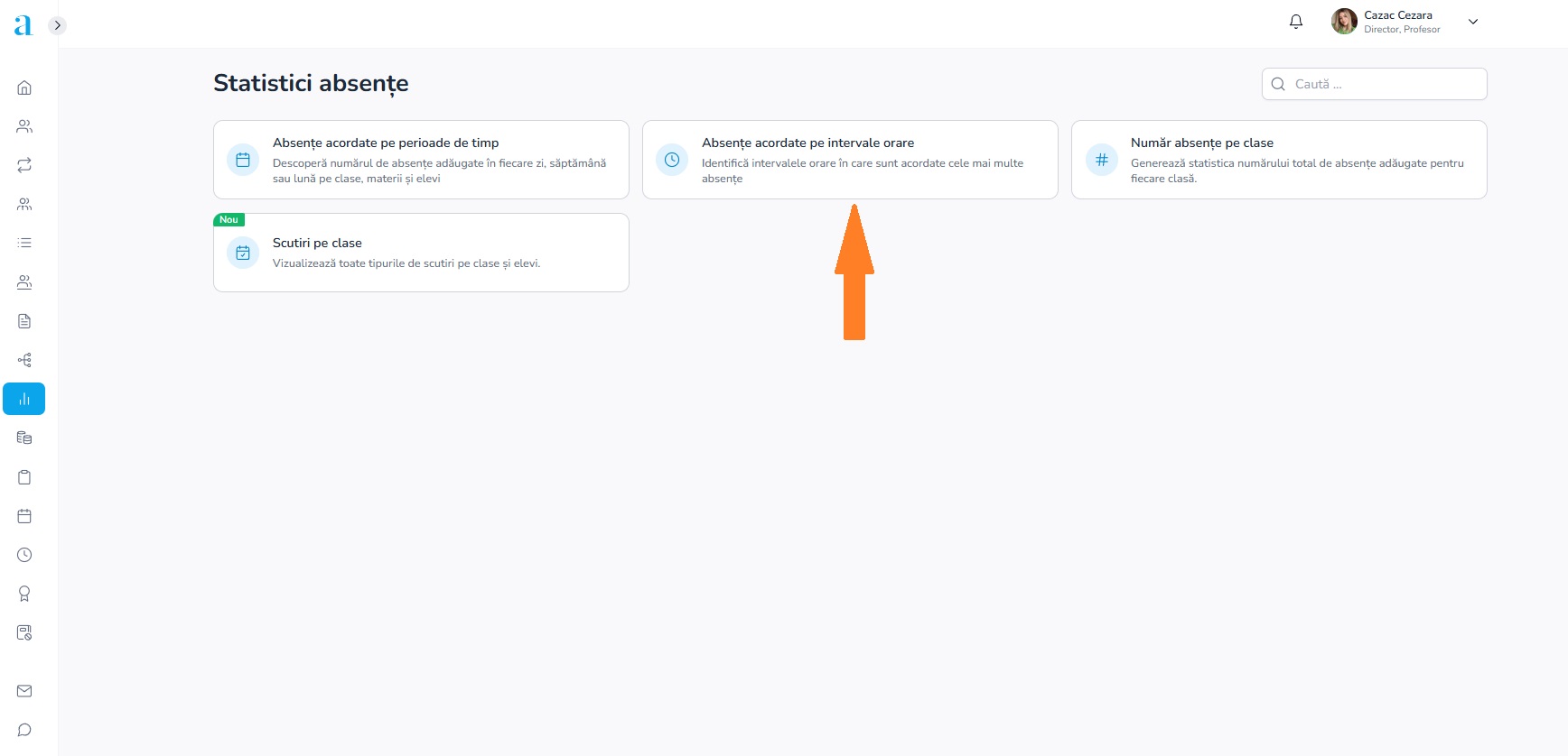 1. Din meniul principal, selectează modulul Statistici/Absențe.