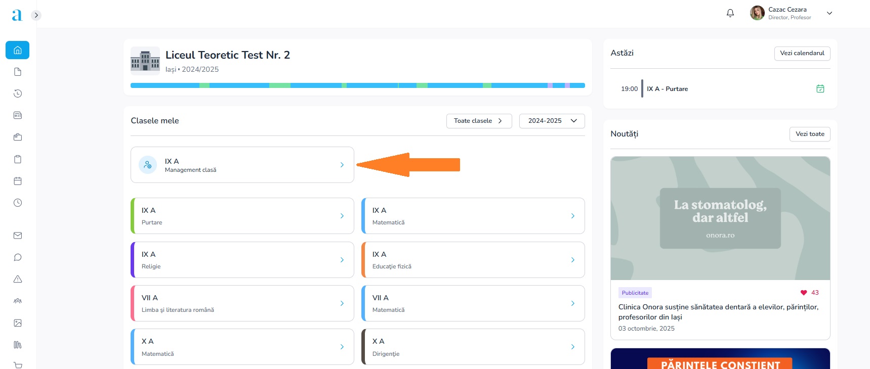 Înregistrarea învoirilor în cadrul platformei este o acțiune exclusiv realizată de către diriginte/învățător/educator. Pentru introducerea unei învoiri, urmează pașii: