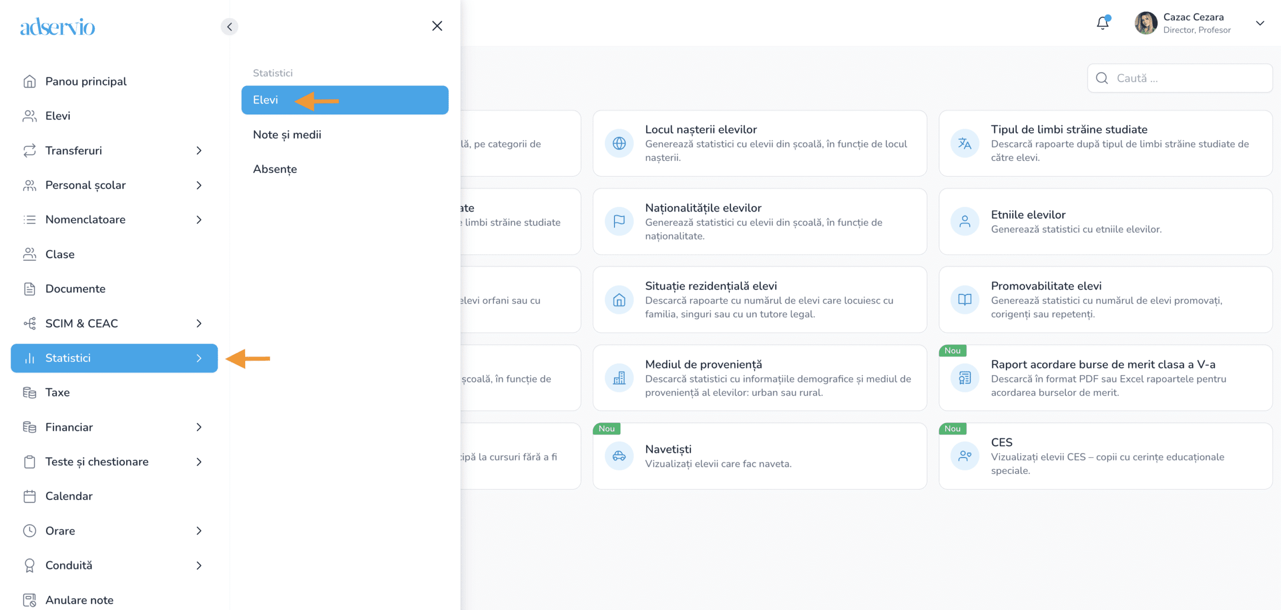 5. Pentru vizualizarea raportului elevilor CES, accesați modulul ”Statistici” – ”Elevi”.