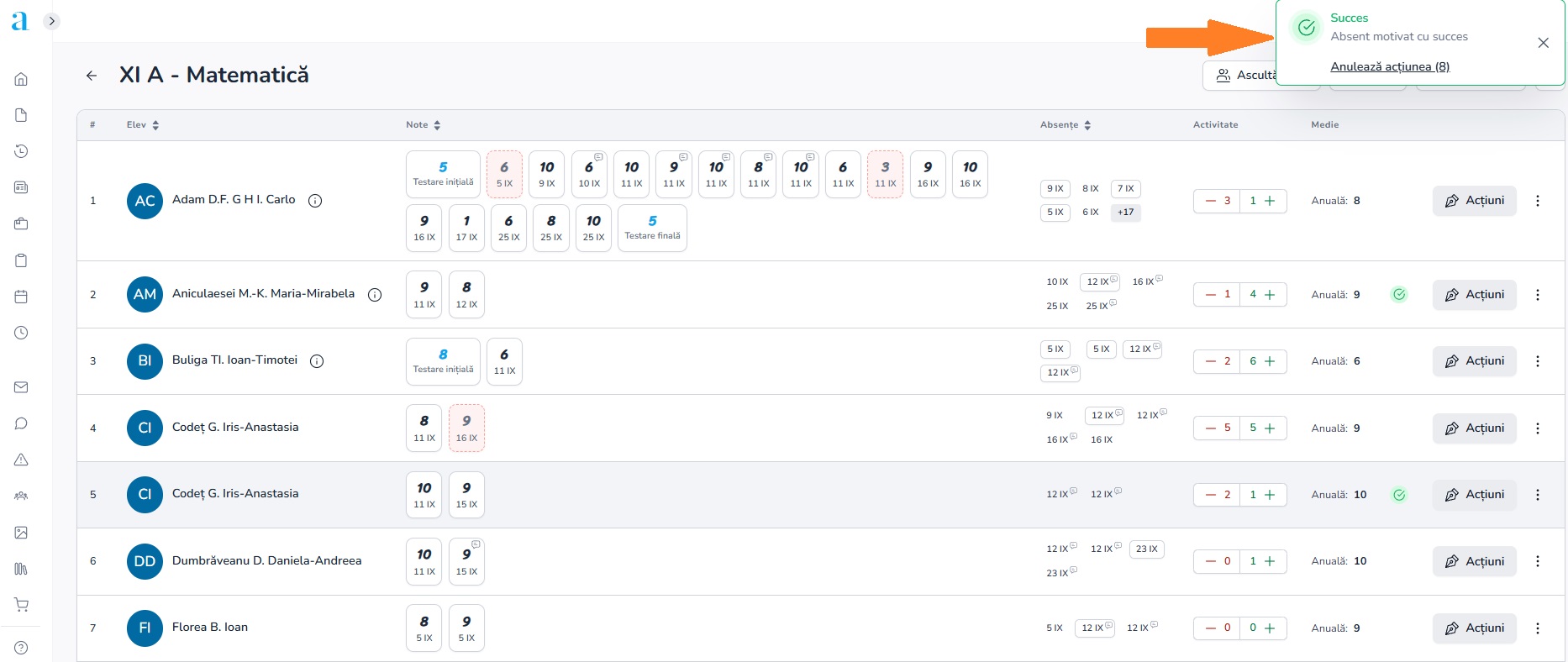 Pentru a motiva o absență acordată unui elev, urmează pașii: