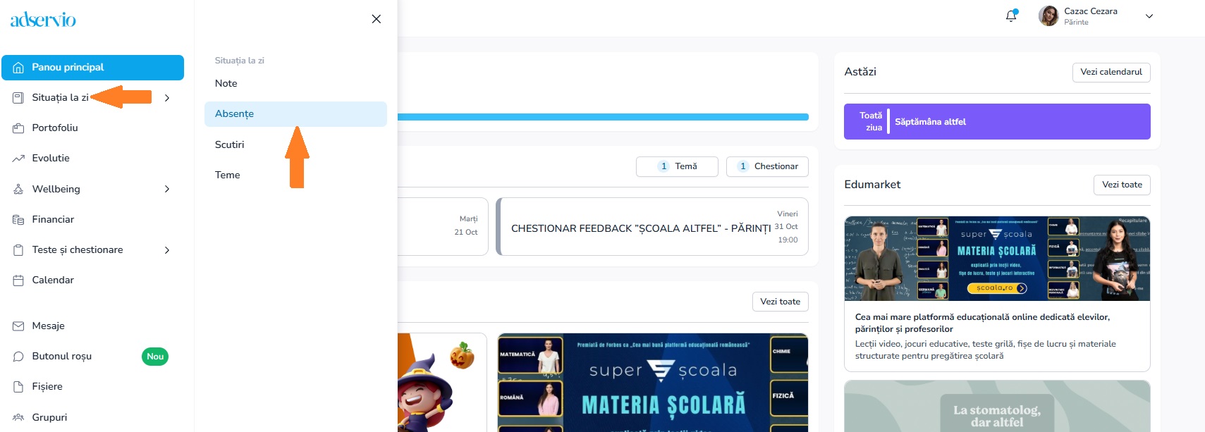 1. Accesează modulul Situația lazi, iar apoi secțiunea Absențe;