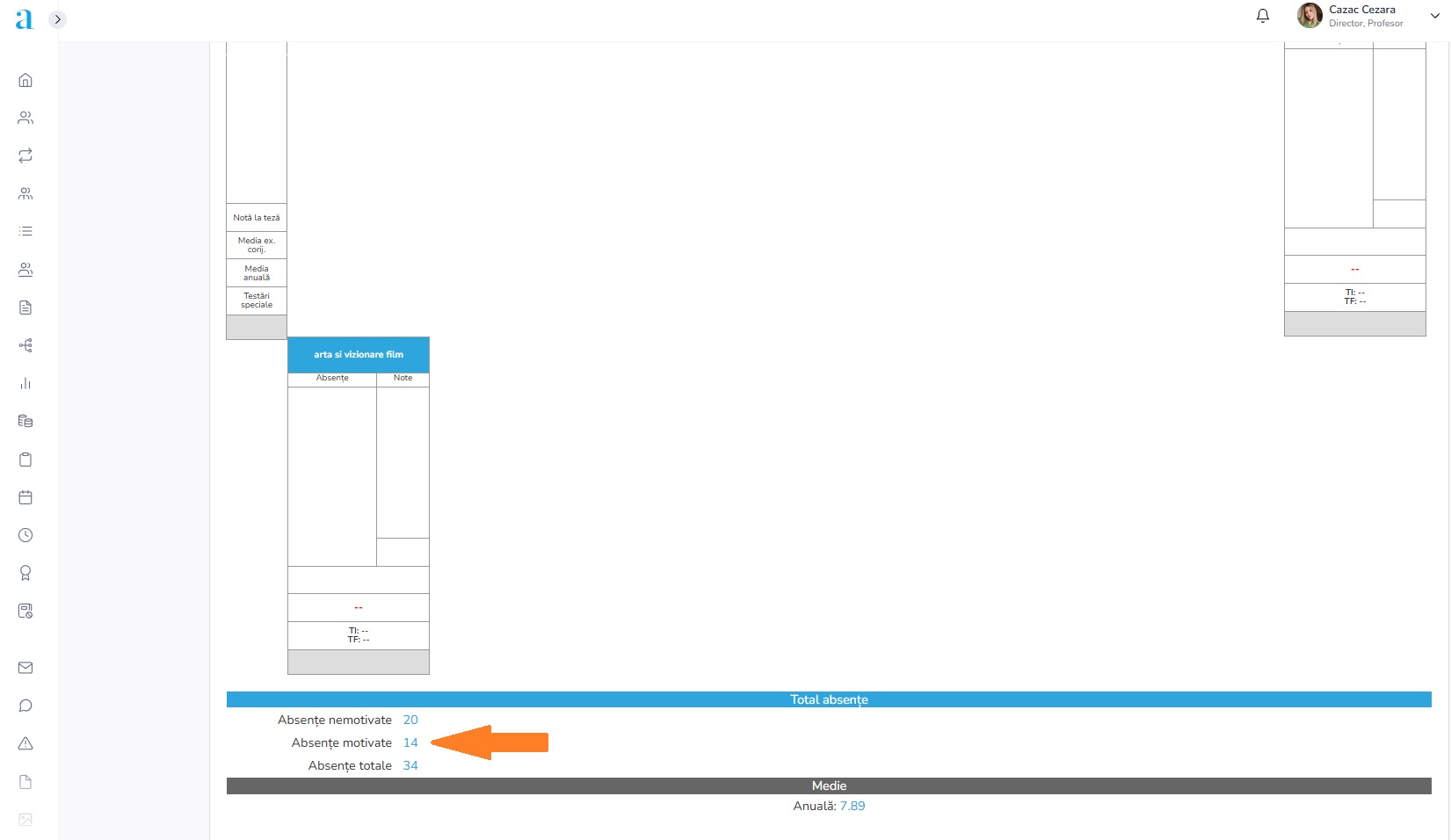 4. În partea de jos a paginii vei regăsi un sumar al absențelor elevului selectat;